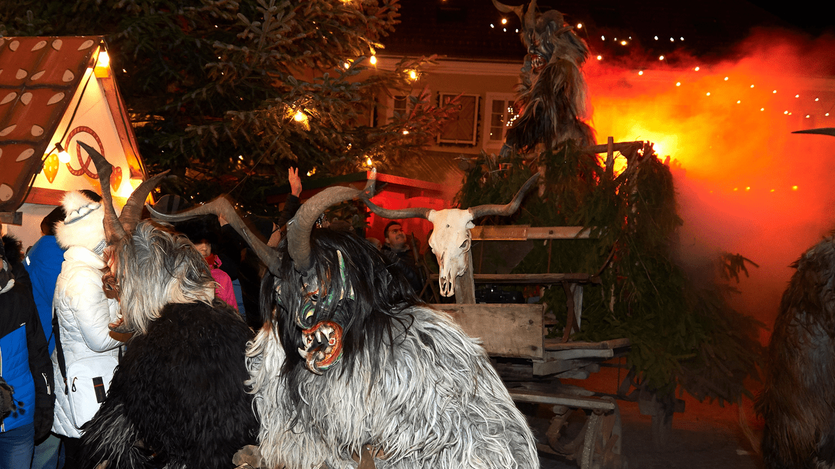 Fackeln leuchten, Ketten rasseln, Glocken bimmeln und die Perchten stürmen den Ortsplatz beim Adventmarkt von Steinbach an der Steyr am Sa, 13. Dez. 2025 um 17.15 Uhr - kurz nach der feierlichen Adventfensteröffnung!