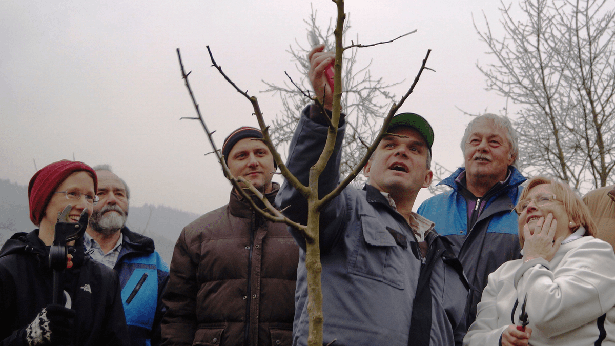 Richtiger Umgang und Schnitt spielen im Streuobstbau eine besonders wichtige Rolle und haben nicht nur auf die Qualität und Quantität der Ernte einen positiven Effekt, sondern tragen auch wesentlich zur Förderung der lokalen Biodiversität bei. Zahlreiche unterschiedliche Schnitte finden unter fachkundiger Anleitung sofort bei mehreren praktischen Übungen Anwendung.