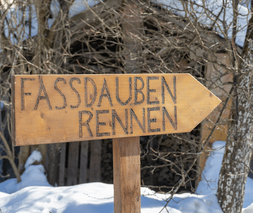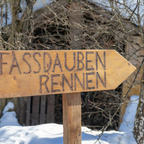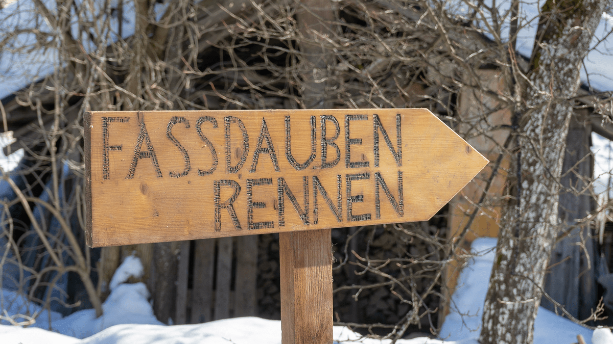 Fassdauben sind die gebogenen Bretter, die dem Fass die Form und den Halt geben. Nur durch Lederriemen gehalten, stürzen sich die Wagemutigen die Piste hinunter. Meist sind auch einige Hindernisse dabei, die überwindet werden müssen.