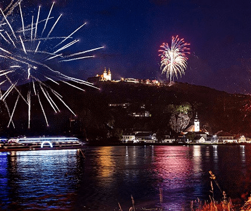 Neben einem grandiosen Feuerwerk in Maria Taferl können Sie das funkelnden Lichtermeer entlang des bezaubernden Flusstales bestaunen.