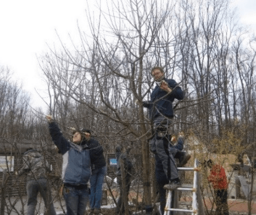 Unter fachkundiger Anleitung wird das Schneiden von Obstbäumen auch praktisch geübt.