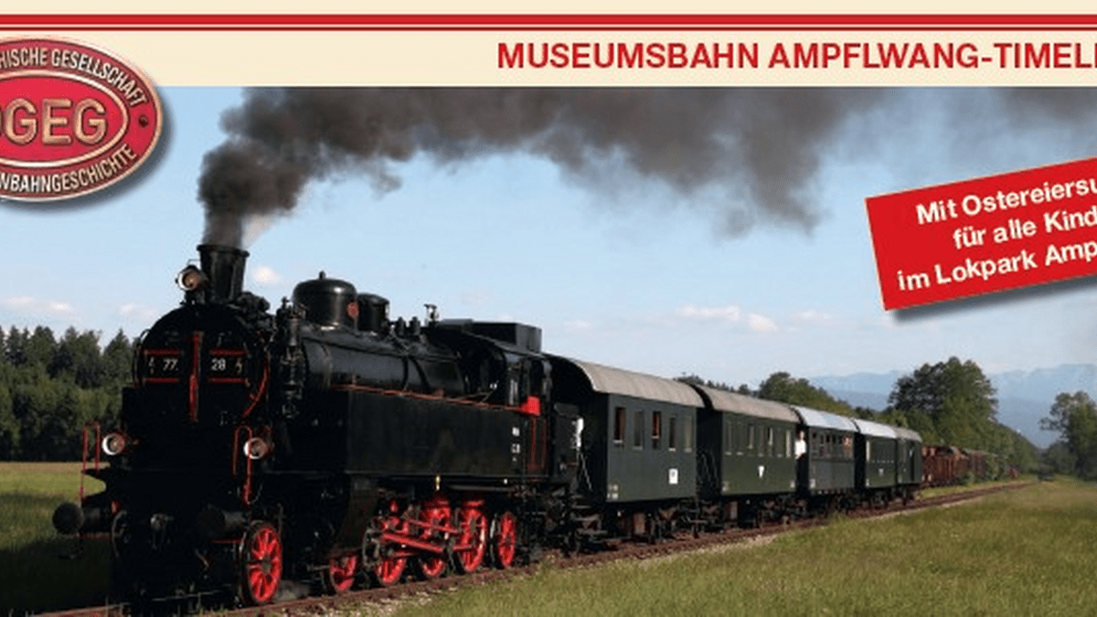 von Timelkam nach Ampflwang und zurück. Während des Aufenthaltes am Zielort findet am Spielplatz im Lokpark eine große Ostereiersuche statt. Ein Spaß für die ganze Familie! In Timelkam kann die Erlebniswelt Energie bei freiem Eintritt besucht werden.