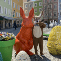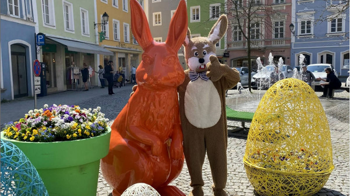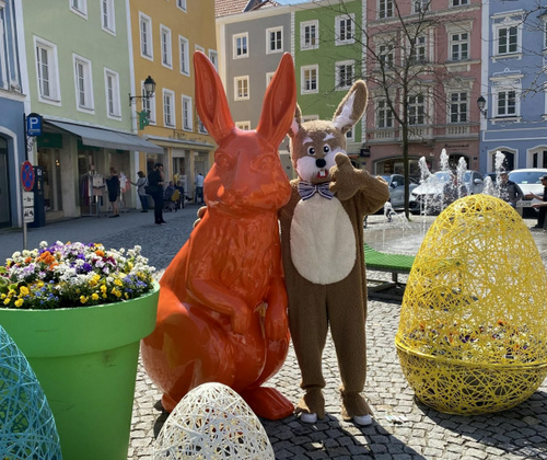 Der Osterhase ist in der Schärdinger Innenstadt unterwegs und mit im Gepäck hat der