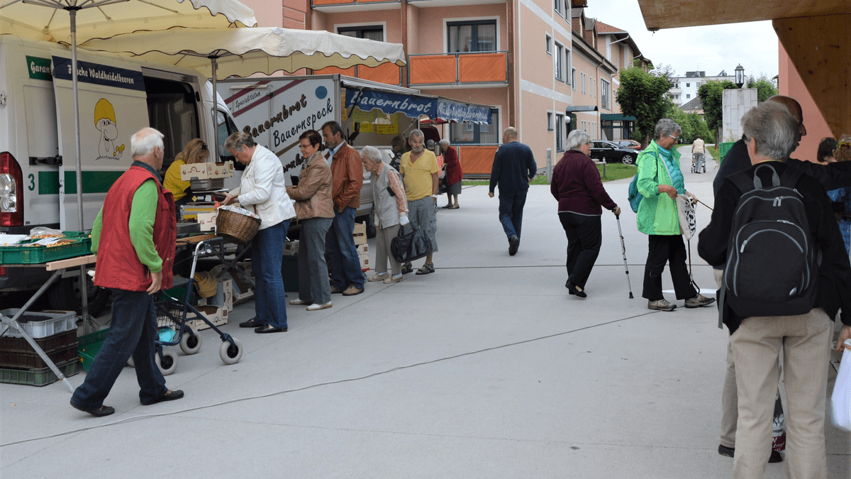 Jeden Freitag von 08:00 - 11:00 Uhr: Wochenmarkt bei den RathäusernDie Angebotspalette umfasst folgende Produkte:Brot, Gebäck & hausgemachte MehlspeisenFleisch, Fisch, Speck & WurstwarenFischKäse, Milchprodukte & EierObst und GemüseHonig, Schnaps, Likör, Most und vieles mehr!
