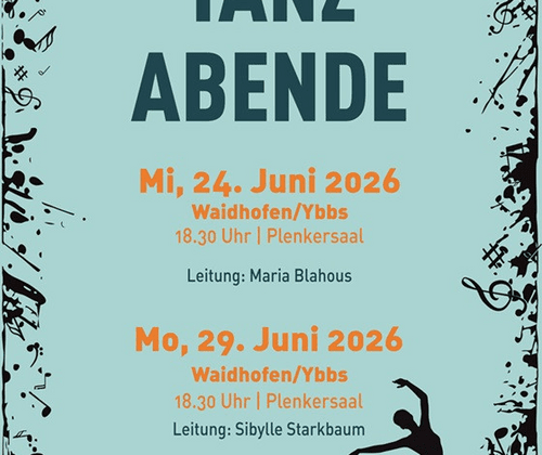 Die Schülerinnen der beiden Tanzklassen von Sibylle Starkbaum und Maria Blahous präsentieren im Plenkersaal, was in diesem Schuljahr erarbeitet wurde. Ob klassisches oder modernes Ballett, Video- und Showdance oder kreativem Kindertanz - die jungen Tänzerinnen sorgen für einen dynamischen und abwechslungsreichen Abend und freuen sich auf zahlreiches Publikum! Eintritt frei!