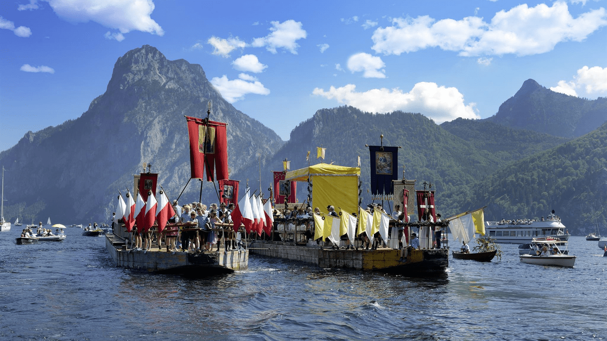 Erleben Sie die seit 1632 stattfindende Seeprozession auf einem Schiff der Traunseeflotte - ein einmaliges Erlebnis.