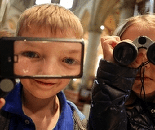 Ausgestattet mit Fernrohr und Lupe begeben wir uns auf die Suche, um verschiedene Bilderrätsel zu entschlüsseln, die Originale aufzuspüren und ihre Bedeutung herauszufinden.