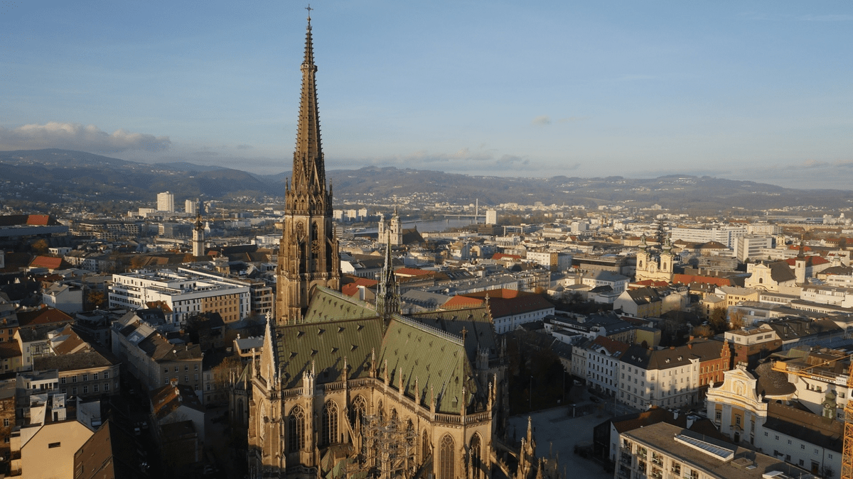 Auf Wendeltreppen und Stahlstiegen werden Sie über 395 Stufen auf die Turmgalerie in 68 m Höhe geführt und können von dort einen großartigen Rundblick über Linz genießen.