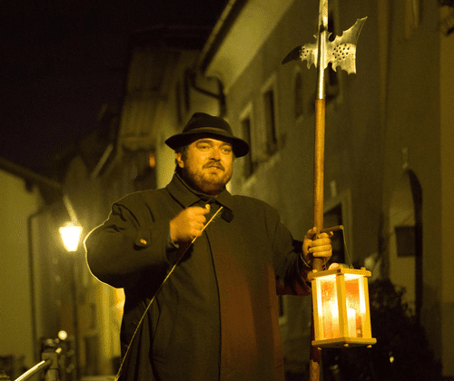 When dusk falls over the historic old town of Hallein, it is time for our night watchman.