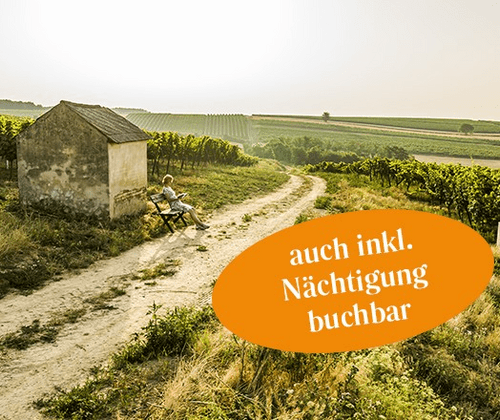 Starting from the Bohrn winery in Herrnbaumgarten, winemaker Gerhard Bohrn will take you on a 30-minute walk to his insider tip for a tasting spot at sunset. The path leads you through the two cellar lanes, Schindergasse and Steinweg – the cellar lanes, a trademark of the Weinviertel region, are therefore omnipresent. After about 2.5 km, you will reach the pyramid at the “Bundesleeranstalt.” From here, you will have a breathtaking view over the charming village of Herrnbaumgarten. Ten different wine tastings will immerse you in the vinophile diversity of the Weinviertel at sunset, accompanied by bread, spreads, and bacon for sustenance.