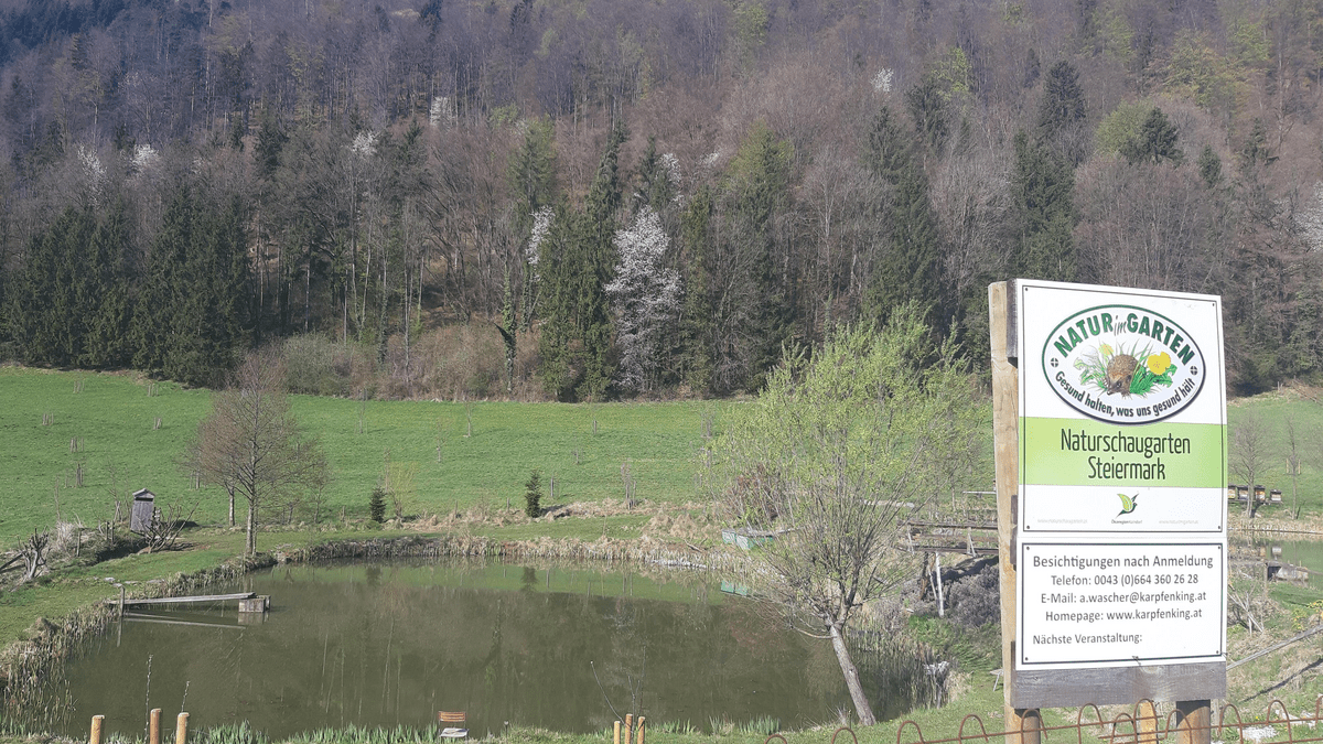 The old orchard reflects a well-established Styrian tradition: tall fruit trees are arranged in a loose structure, providing space for biodiversity and creating a tranquil atmosphere. The pond and water area invite close observation: small aquatic inhabitants like plankton and noble crayfish are native here – a reflection of the lively interplay between garden, nature, and water.