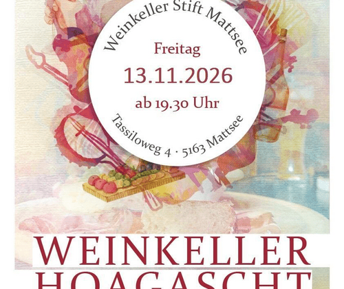 The Wine Cellar Hoagascht is now entering its fifth year. In 2022, this series was established with the aim of providing a public stage for traditional folk music and filling the historic wine cellar of the Stift Mattsee with song and music. Coupled with a good glass of wine, culinary delights, and the enthusiasm and joy of music, there is happiness on both sides, whether among the listeners or the performers. This event is very popular among friends of folk music and folk songs and is supported by the Salzburg Folk Song Association. Registration in the wine cellar: Phone: +43 650 3403878, Email: weinkeller@stiftmattsee.at When: FR 10.04.2026 at 7:30 PM Where: Wine Cellar Stift Mattsee, Tassiloweg 4, 5163 Mattsee