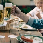 The Crane Bridge is especially a popular gathering place on Thursdays. As part of the Kesselheißen, a traditional Thursday event in Upper Austrian butcheries, fresh sausages such as Frankfurters, Knackers, Debreziners, Cheese Krainers, Spicy Sausages, White Sausages, or Braunschweigers are served with draft beer in our cozy dining rooms. During the warm season, our beer garden is also open on nice weather days. Our Thursday offerings include not only the obligatory sausages but also blood sausage hash, Bosna, goulash, and daily specials. Of course, we also have vegetarian options on Thursdays. At the Crane Bridge, you can enjoy draft beer and Hopfenkönig from the Eggenberg Brewery.