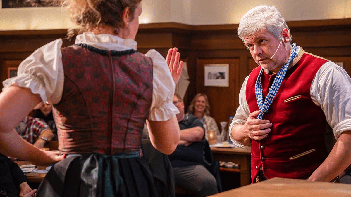 Treat yourself to a break! This experience awaits you: Content Choose from the following interactive plays: "Bavarian for Beginners," "Dumpling Conspiracy," or "Corpse Feast" Accompanying 3-course menu (drinks not included) Participant voucher valid for 1 person Group size: 10-100 people Duration Approximately 3 hours Equipment & clothing none Participation conditions none