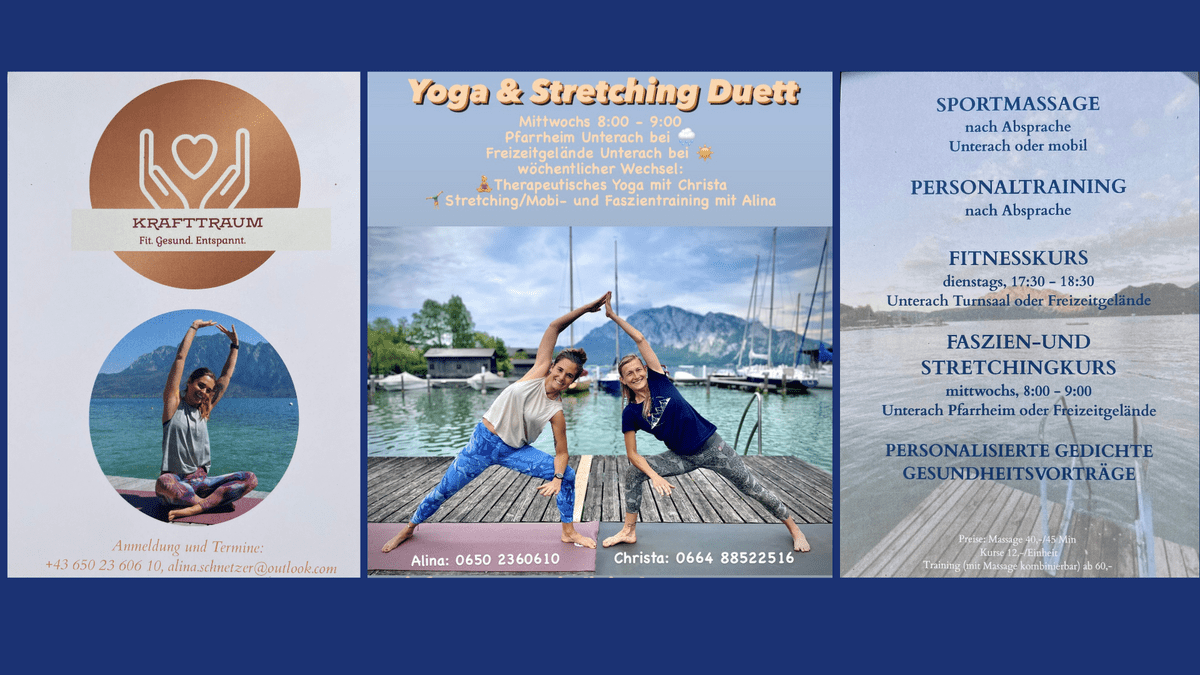 Wednesdays from 8:00 AM to 9:00 AM in nice weather at the leisure area in Unterach, and in bad weather at the parish hall in Unterach.