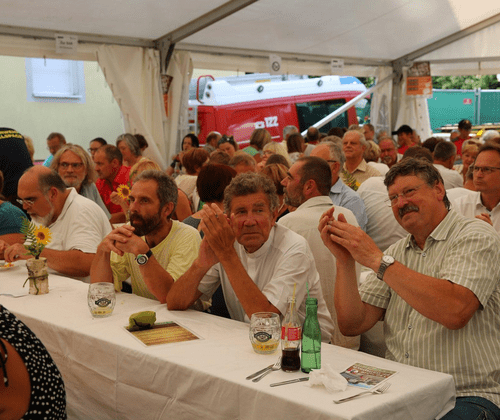 The Sunday morning gathering starts on August 2nd at 10 AM and will be musically accompanied by the Gallspach market band. In addition to other dishes, there will again be crispy grilled chicken on Sunday.