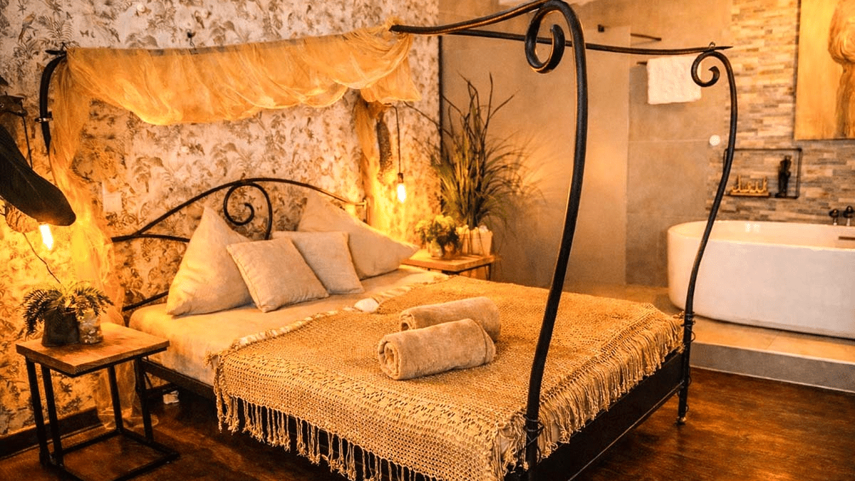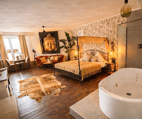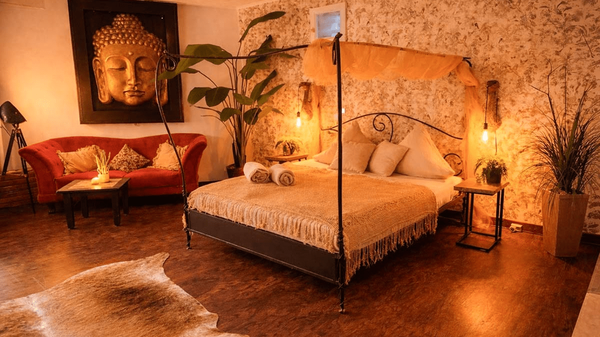 - 1 overnight stay in a romantic apartment with whirlpool tub, four-poster bed, and fully equipped kitchen