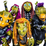 Heavysaurus concerts are spectacular: lights, fog, balloons, confetti, and real live music from professionals in dinosaur costumes. Wherever Heavysaurus performs, heads bob and children's eyes light up. 1 Euro from each ticket goes to "Die Arche" - for children who need support.
