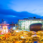 A cozy Christmas market cabin village with a view of Lake Constance and the Alps awaits visitors at the Lake Constance Christmas market. Other highlights include the large decorated Christmas tree in the middle of the cabin village, the nativity scene, and the large mulled wine Christmas pyramid. Whether it’s culinary delights like Dinnede, mulled wine, cheese spaetzle, and much more, wooden goods, jewelry, or festive decorations – our more than 70 market vendors ensure a colorful and varied selection at the Christmas market – there is certainly something for every taste! Ice Stock Rink The adjacent synthetic ice stock rinks, each 16 meters long, offer plenty of fun for curling. Of course, culinary delights are also well catered for: At the mini bar's gastro hut directly on Romanshorn Square, food and drinks are provided, including delicious mulled gin, Christmas beers, grilled cheese sandwiches, and other treats.