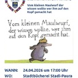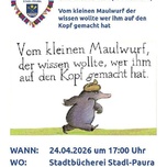 Invitation to the Story Theater (Kamishibai) as part of the LONG NIGHT OF LIBRARIES "The Little Mole Who Wanted to Know Who Did It on His Head" For children aged 3 and up After the story theater, the library will remain open until 9 PM.