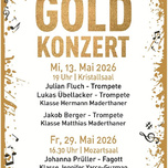 On Wednesday, May 13, Julian Fluch, Lukas Übellacker from the class of Hermann Maderthaner, and Jakob Berger from the class of Matthias Maderthaner will take their final examination in Gold in the subject of trumpet. The public Gold concert will begin at 7 PM in the Crystal Hall of Schloss Rothschild.
