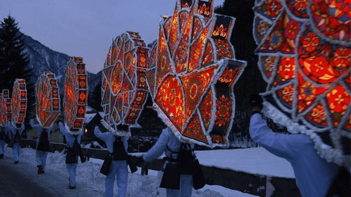 Each cap is essentially a small work of art. Several hundred hours of work are required to create a single cap. Multiple designers create the images, which is not an easy task, as no motif can be used more than once. The motifs are then painstakingly cut out from colored paper, punched, and backed with colorful tissue paper. Inside the wooden framework, several candles are attached to illuminate the Glöckler caps. The traditional shapes of the caps are storm hats, five-pointed stars, and seven-pointed stars. At exactly 6:00 PM, a cannon shot announces the start of the Glöcklerlauf, which takes place regardless of the weather. The collectors request voluntary donations from visitors, which are also used for the construction and redesign of additional caps.