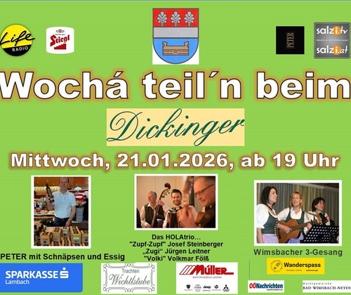 Wochá teil´n bei der Hoftaverne Dickinger 19:00